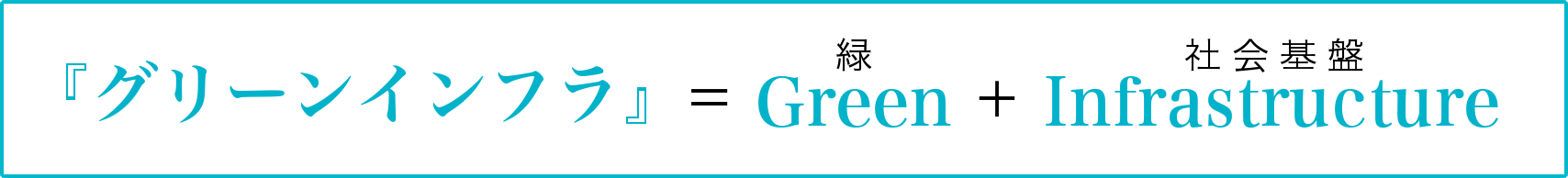 『グリーンインフラ』とは、緑を表す Green と社会基盤を表す Infrastructure を組み合わせた造語です。2015年8月に閣議決定した国土形成計画に「グリーンインフラ」が盛り込まれたことから、これからの日本における都市開発や社会基盤整備の1つの手法として最近注目されています。