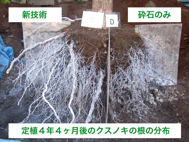 再生砕石も新技術で根が健全に生育し、グラウンドの下も雨水貯留浸透空間に